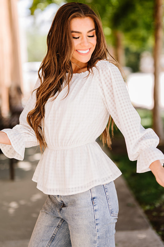Tied Mesh Puff Sleeve Peplum Surplice Top