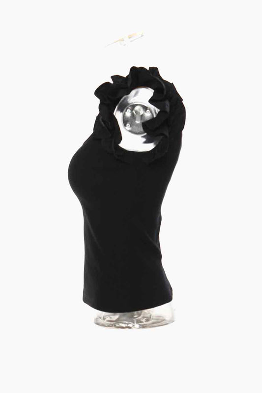 Ruffle Shoulder Scoop Neck Ribbed Top