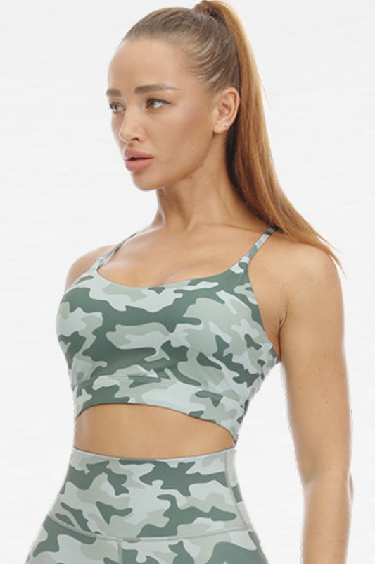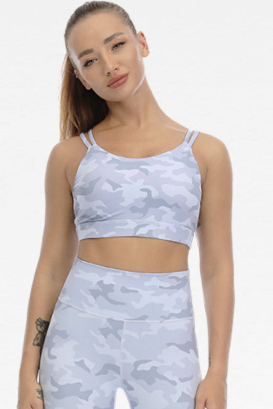 Snakeskin Print Contrast Spaghetti Strap Sports Bra