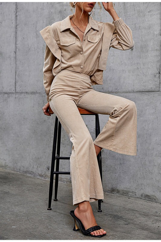 Bell Sleeve Satin Cropped Top and Flare Pants Set