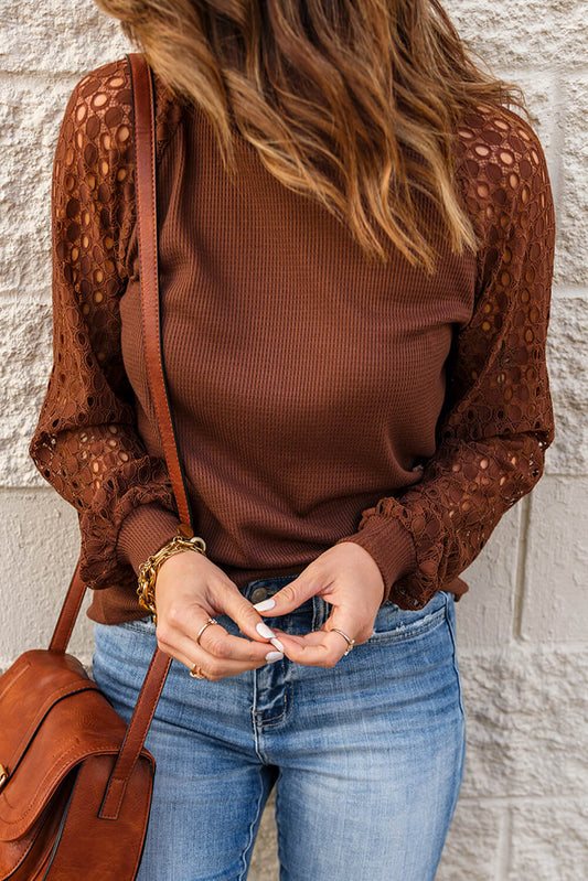 Swiss Dot Balloon Sleeve V-Neck Blouse