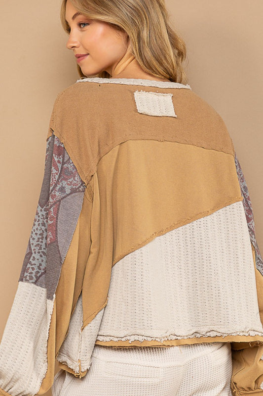 POL Long Sleeve Cut Sew Peace Emblem Top