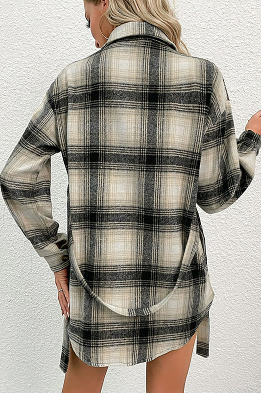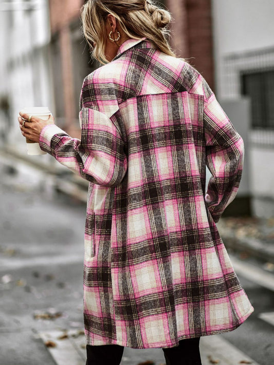 Plaid Dropped Shoulder Pocketed Shirt Jacket