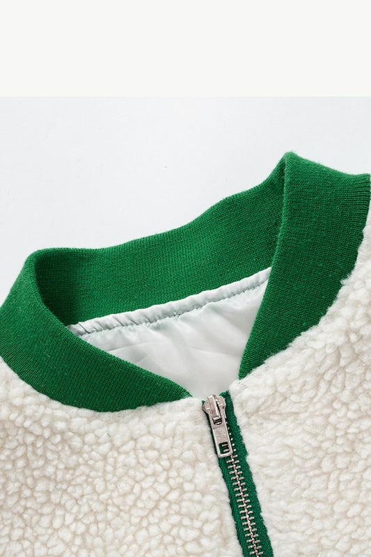 Contrast Graphic Zip Up Sherpa Bomber Jacket