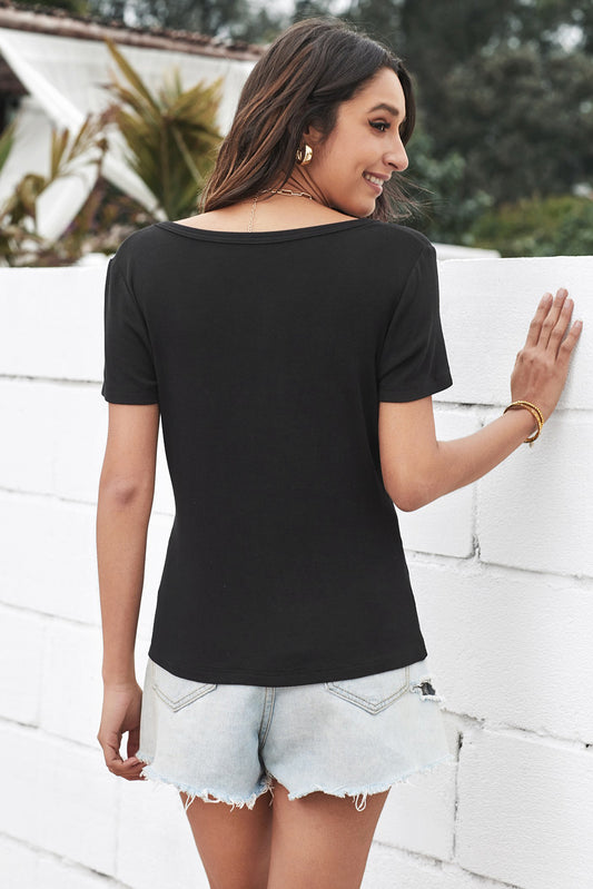 Sold outScoop Neck Buttoned Front Ribbed Top