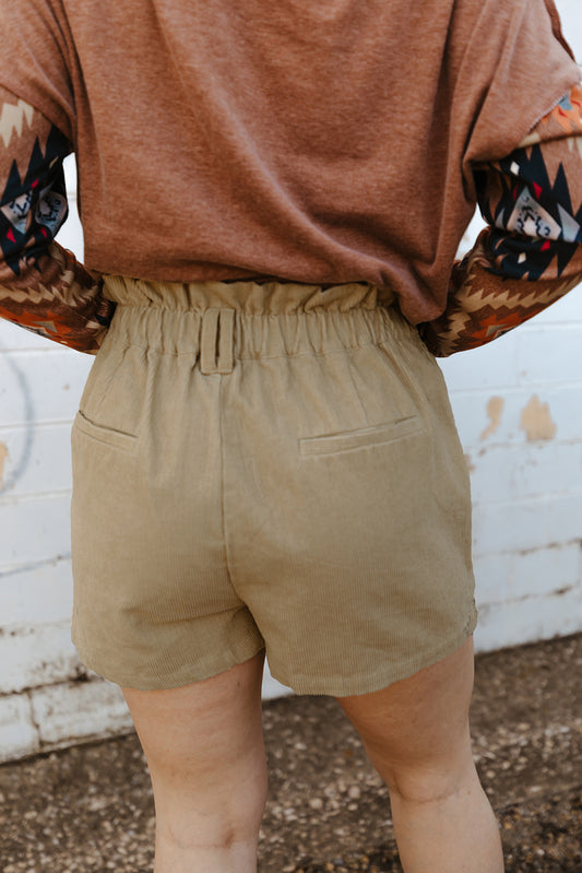 Corduroy Paperbag Waist High Waist Shorts with Pockets