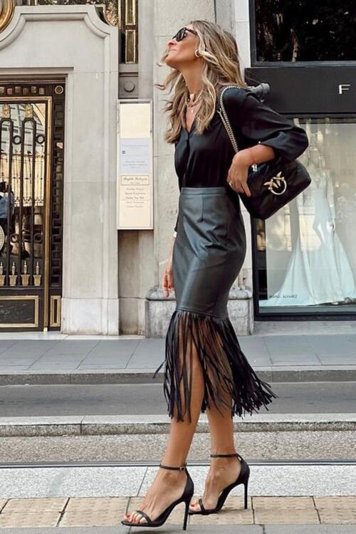 Sold outHigh Waist Fringe Hem Skirt