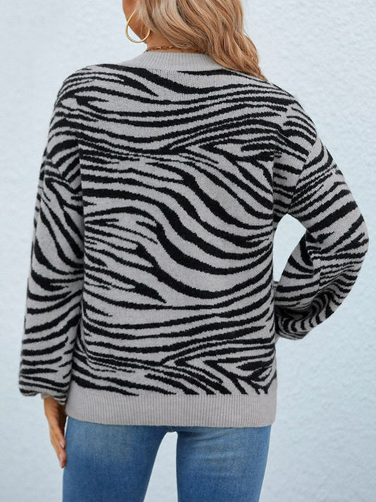 Leopard Color Block V-Neck Rib-Knit Sweater