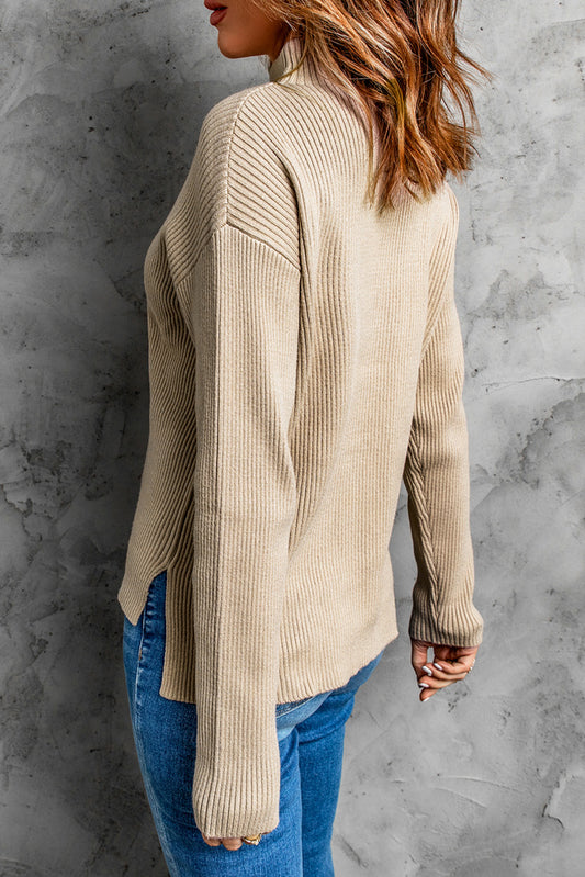 Mixed Knit Quarter Zip Dropped Shoulder Sweater