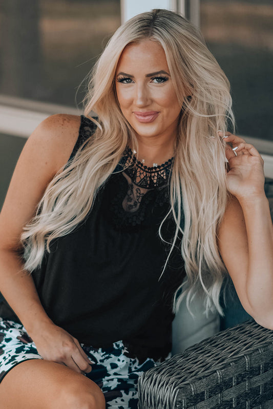 Sold outCrochet Lace Trim Spliced Tank