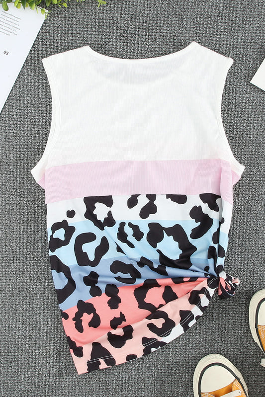 Leopard Striped Ribbed Sleeveless Tank