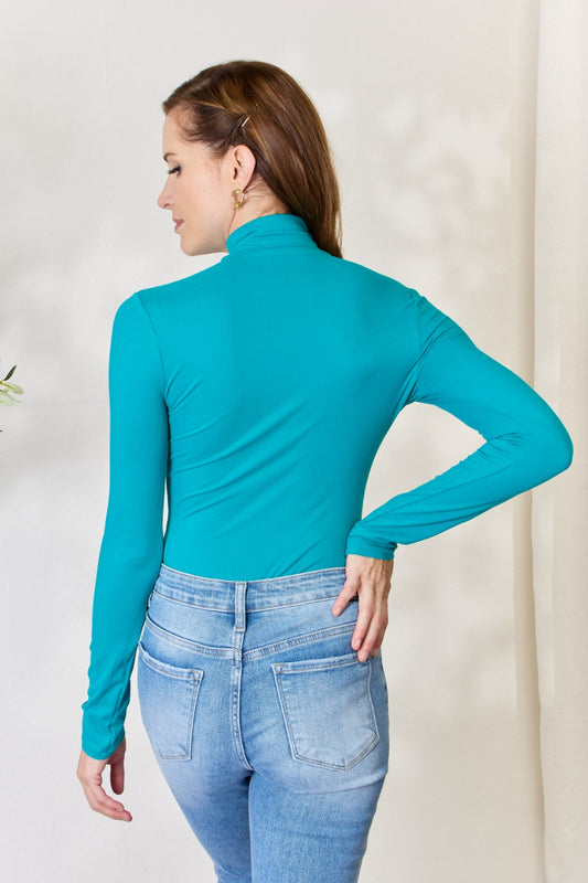 Half Zip Scoop Neck Long Sleeve Bodysuit
