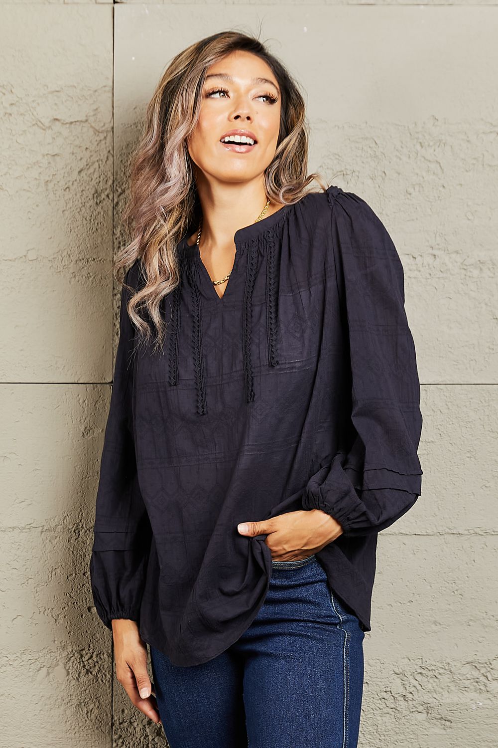Petal Dew More For You Long Sleeve Stitch Blouse