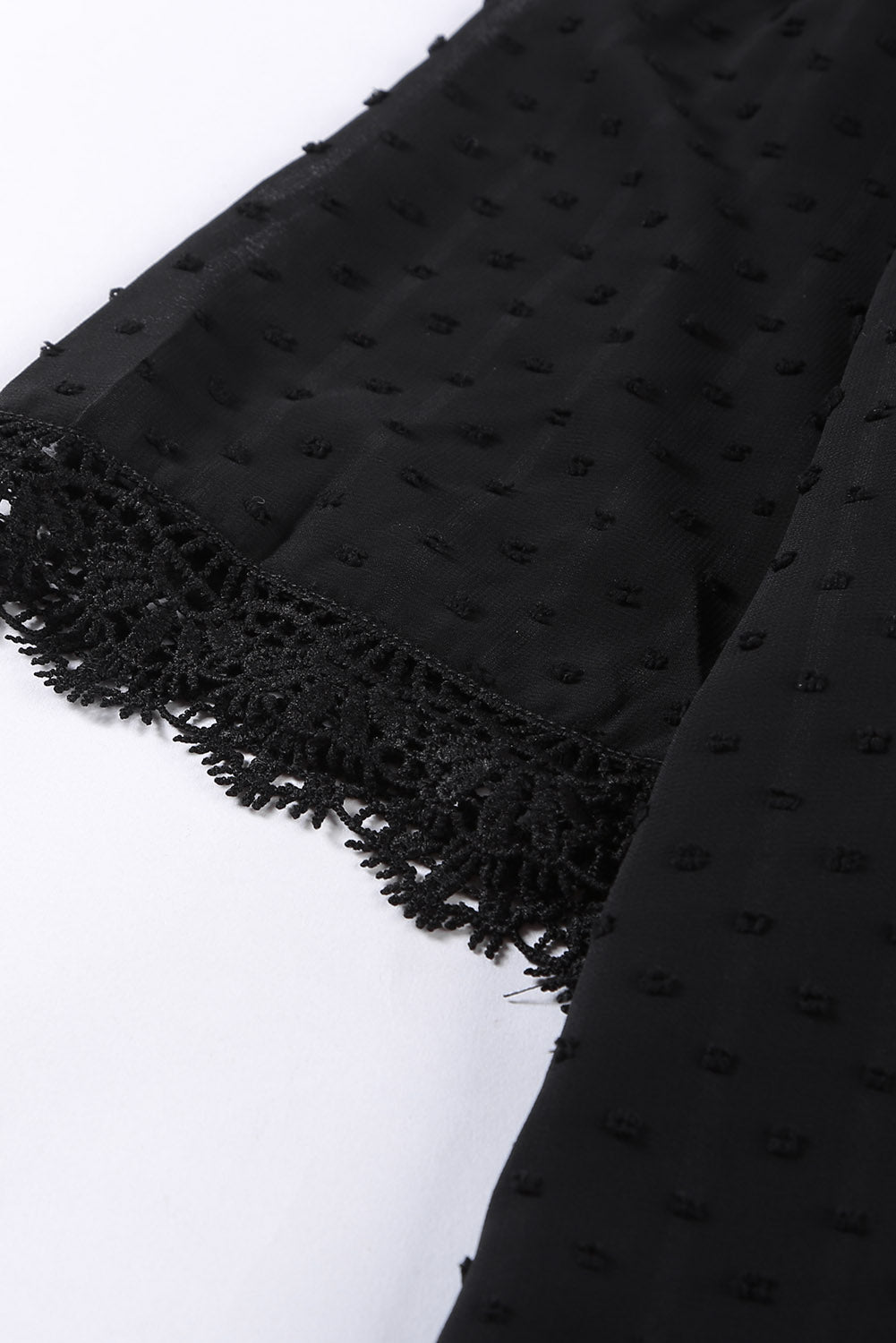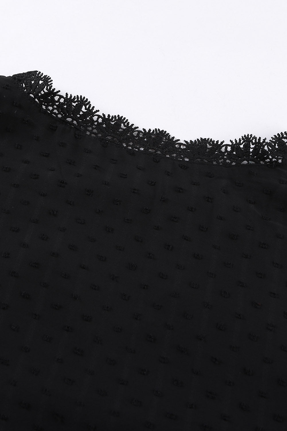 Plus Size Swiss Dot Spliced Lace V-Neck Blouse