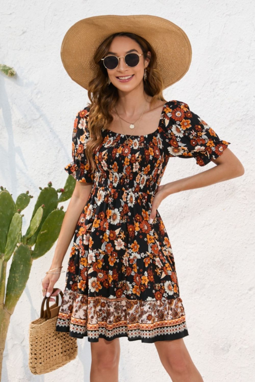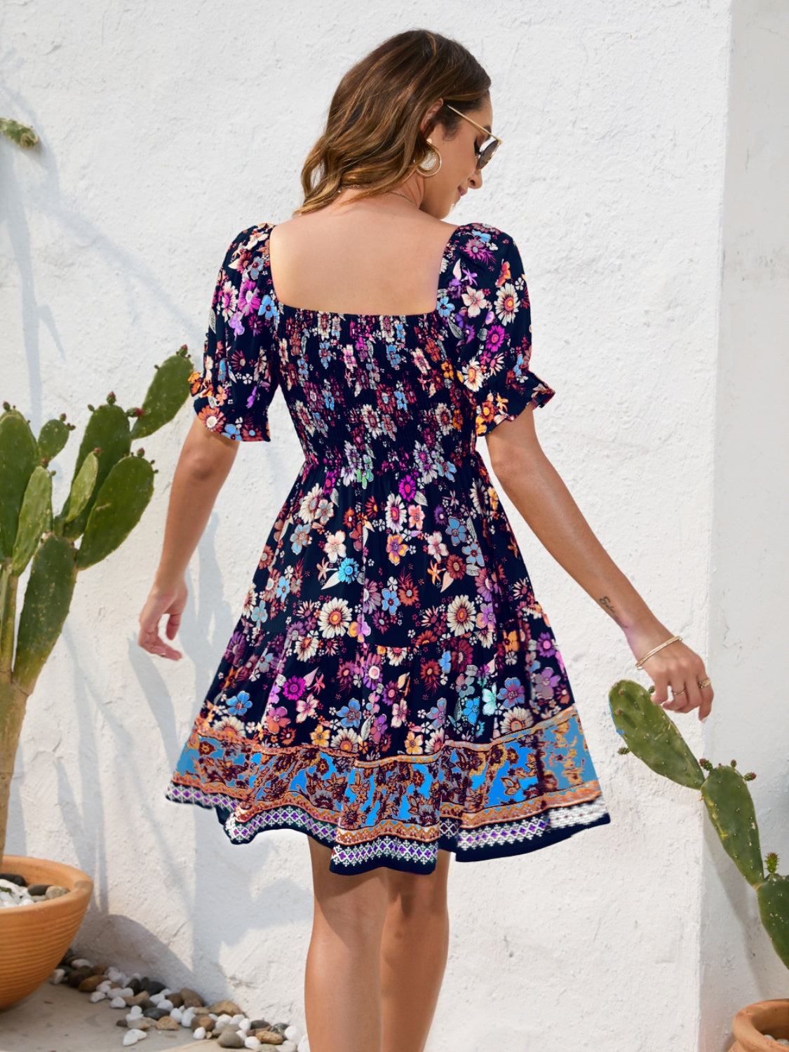 Printed Square Neck Short Sleeve Dress
