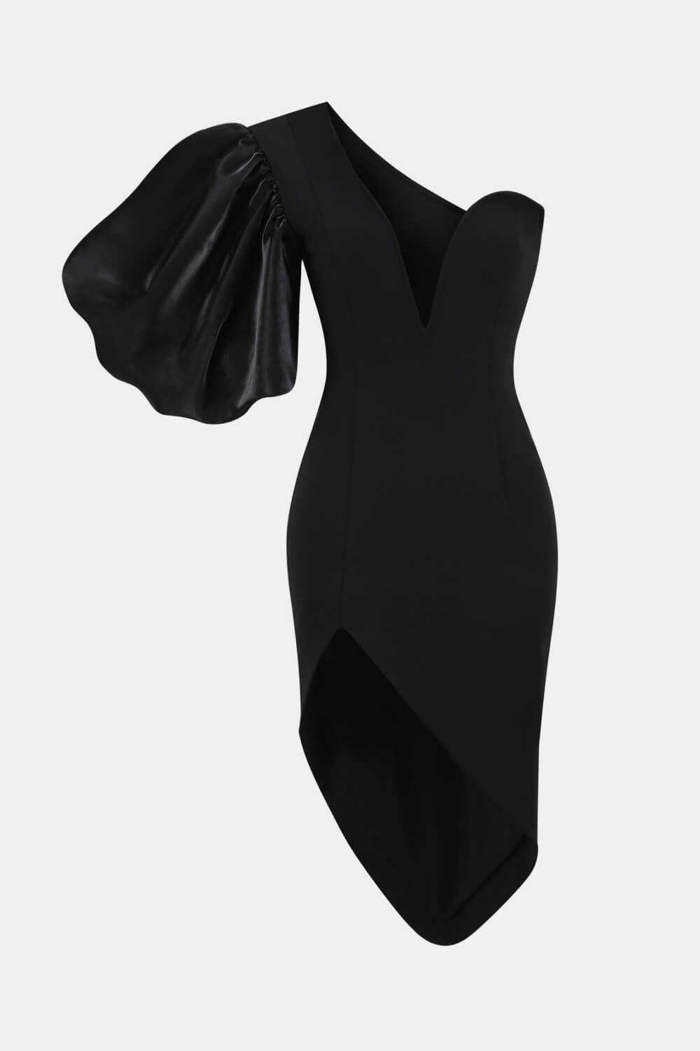 Puff Sleeve Deep V Asymmetrical Hem Dress