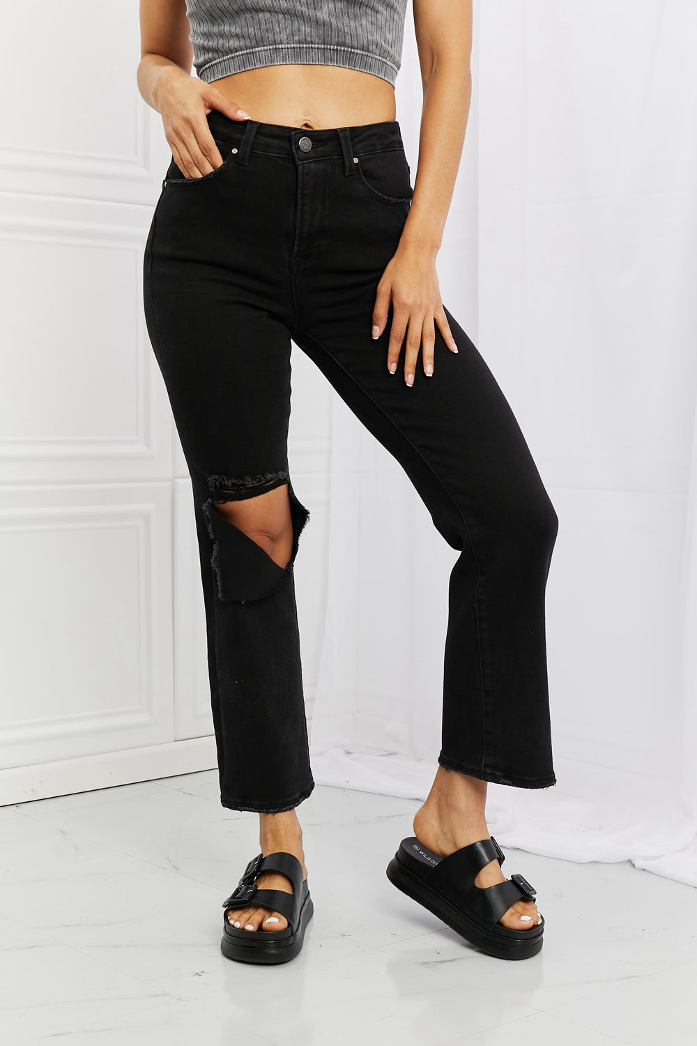 Distressed jeans will never go out of style! These high waist relaxed jeans have one distressing on the right knee which will give your outfit a casual and edgy look.